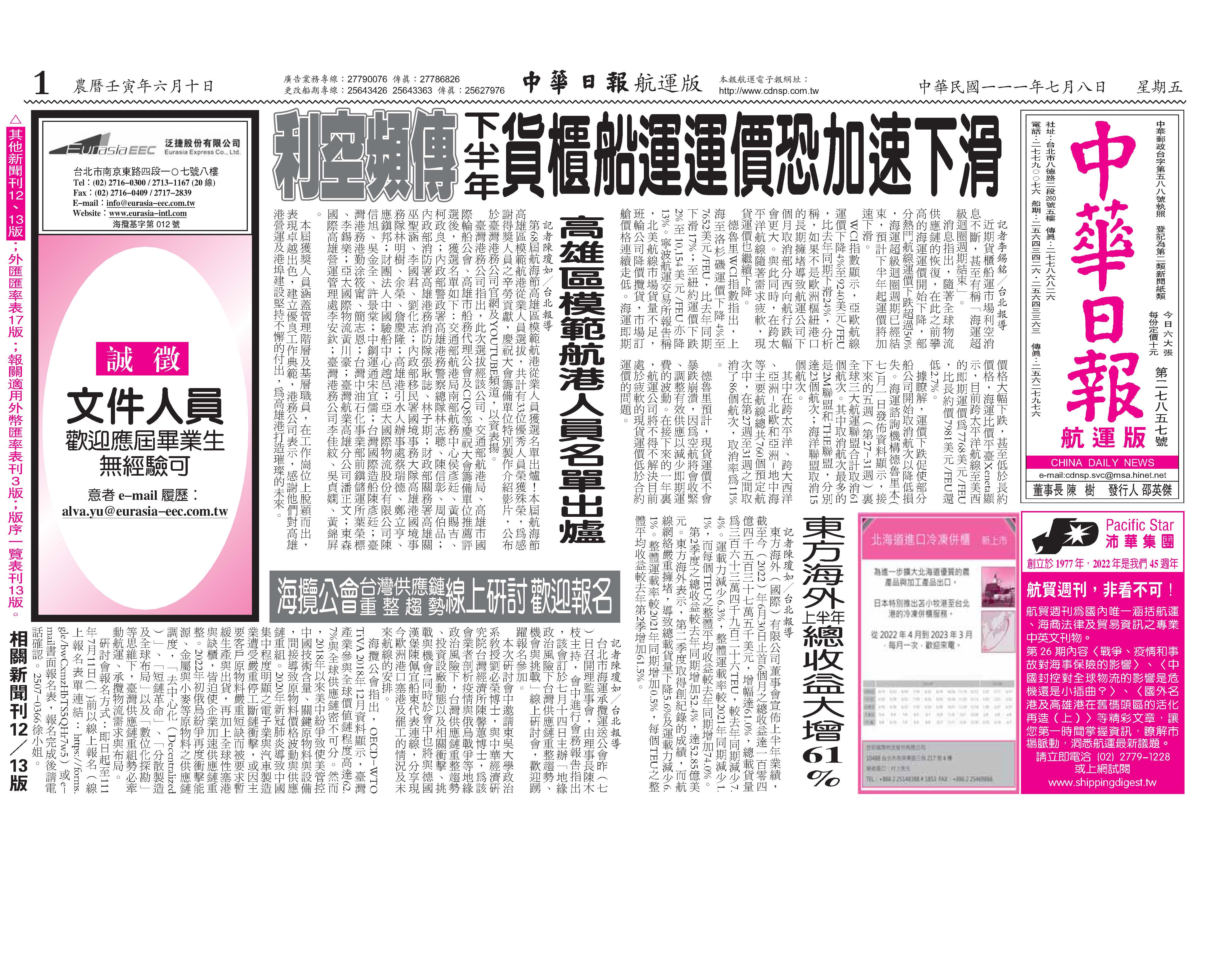 貨櫃船運市場利空頻傳下半年運價恐加速下滑